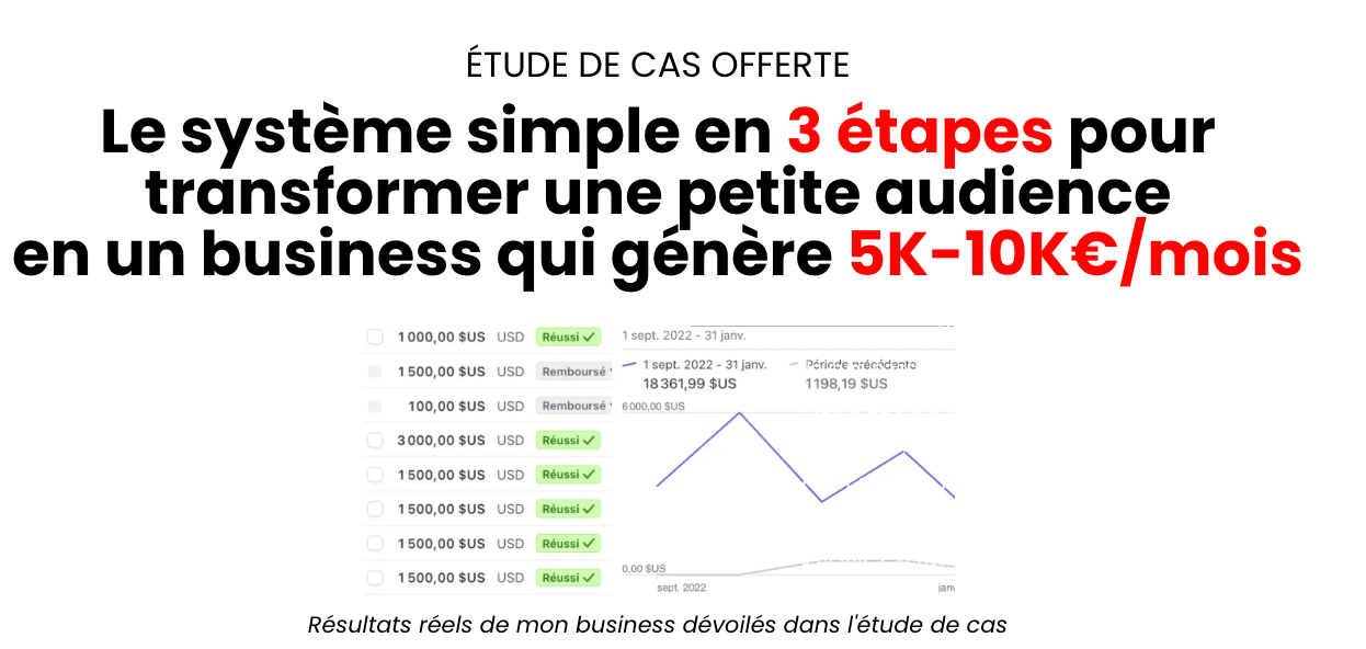 Étude de cas offerte pour tous les entrepreneurs, créateurs, coachs et formateurs qui veulent passer le cap des 5-10K€/mois avec leur business
