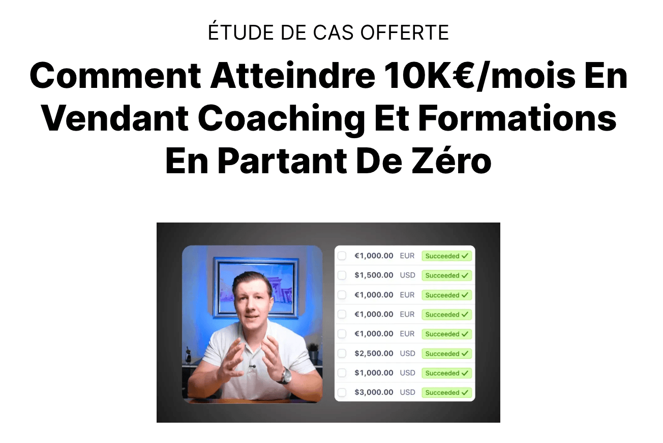Chaque programme repose sur plus de neuf ans d’expérience concrète dans la création de business en ligne, la vente de formations digitales et l’accompagnement personnalisé.